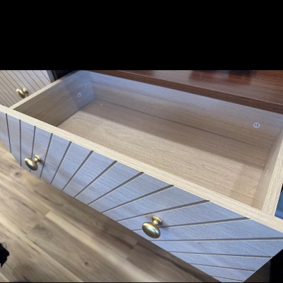 The item came very quickly and undamaged which was much appreciated. It was a bit of a pain to put together as every single piece has to be assembled but my husband did it by himself in a couple of hours with no issue. It’s very aesthetic and nice on the eyes. The drawers slide nicely. My only issue is the drawers don’t come out very far so you’re a bit limited as for storage. All in all though, I’m very happy with it.