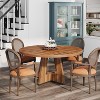 - Farmhouse-style round dining table with rustic elegance