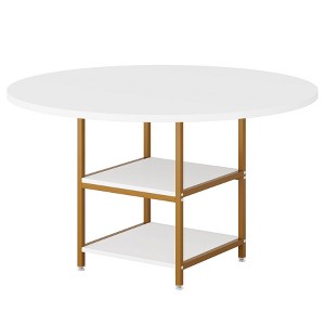 Tribesigns 47-inch round dining table is thoughtfully designed to comfortably accommodate up to four people, making it a perfect dining solution for families or small gatherings. Its circular design promotes cohesive conversation flow, fostering an intimate and congenial atmosphere for meals. Whether it's for day-to-day dining or festive celebrations, this table ensures a comfortable and social dining experience.