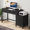 Composed of 2 drawers computer desk and 3 drawers file cabinet, compact design maximizes your workspace and storage space without taking up much space. Made of high quality E1 particleboard and MDF board, this desk with storage is built to last, durable, sturdy, wear and scratch resistant. The premium thick metal tube frame ensures the stability and sturdiness for the work desk. Adjustable leg pads help the drawer table stands stably on uneven floor.