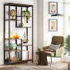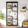 Features 6-tier 8 open staggered shelves, maximize the vertical space that provide plenty of space for storing and displaying your books, photo frames, collections, etc. Keep your space tidy and organized. Combined with vintage wood grain shelves and black metal frame, this bookcase blends into any home decor perfectly and adds a stylish and industrial feel to your living room and home office. rafted from durable E1 particleboard and thick metal frame which ensure stability for long term use and a better load-bearing. Besides, equipped with 4 non-slip adjustable feet to help keep balance.