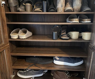 - Adaptable shelves accommodate various shoe types