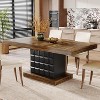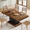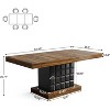 The dining table presents a sophisticated design with a brown tabletop and a standout cubed-patterned, black base adding richness and a modern vibe to your dining area. Offering dimensions of 63" W x 31.5" D, this dining room tabletop affords ample space to accommodate multiple diners comfortably, making it suitable for both routine meals and festive dinners.