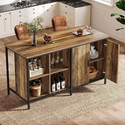 Lantine 63-Inch Home Bar Unit, 2-Tier Farmhouse Liquor Bar Table with Storage Shelves, Wine Bar Cabinet Mini Bar Table for Home Pub, Bistro