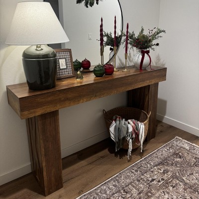 - Wooden Entryway Table: This entryway table is perfect for your home. This narrow console table can display plants, books, artwork and more. The unique wood grain of this table can add a touch of sophistication and elegance to your home
