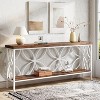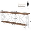 Designed with a unique, intricately shaped metal frame on the back, this slim console table blends effortlessly contemporary style with a hint of artistic flair. The sofa console table boasts versatility and style to masterfully blend into your home. Whether keep it behind couch as a sofa table to enhance your seating area, or place it in your entryway as a console table for creating a captivating decorative display, it will give you a great experience.