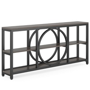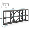 The circular frame is located in the middle of the console table to let the original ordinary sofa table have a unique style. Wooden finish mixed with a black metal frame creates a farmhouse and industrial style. 70.9 inches tabletop and 3 tiers open shelves design offers plenty of room to display your pieces of stuff. You can find a good place for knick-knacks, a scented candle, decor pieces, storing books, boxes, and other miscellaneous items.