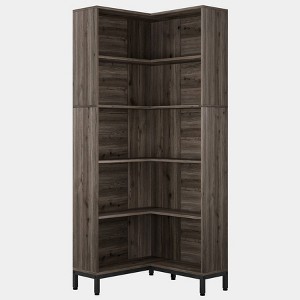 - 6-Tier corner bookcase design, ideal for organization