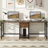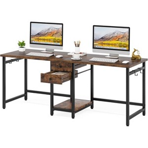 This two person desk features a double workstation with 2 drawers and storage shelf in the middle, providing a plenty of space for books, laptop, gaming setup and other office accessories. The long desk is manufactured from high-quality E0 board and stainless steel legs. The thickened metal frame ensures the super stability and thicker board is strong enough to support heavy duty load; The adjustable foot pads keep the large office desk stable on uneven ground and protect the floor from scratch.