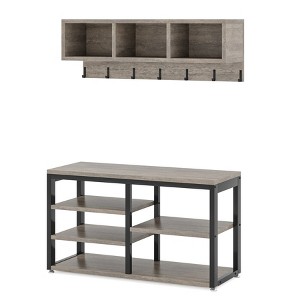Comes with 3 storage cubbies, top storage shelf, 7 hooks, shoe bench and 3-tier shoe rack, this entry shoe bench set will make you can effortlessly keep your entryway tidy and organized. Crafted from high grade particle board with environmental water-based finish that makes it resistance, durable and easy to clean. The bench legs made from solid metal ( 2×4cm width) which offers super stability and durability, the sturdy steel structure can withstand up to 90kg.