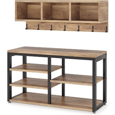 Comes with 3 storage cubbies, top storage shelf, 7 hooks, shoe bench and 3-tier shoe rack, this entry shoe bench set will make you can effortlessly keep your entryway tidy and organized. Crafted from high grade particle board with environmental water-based finish that makes it resistance, durable and easy to clean. The bench legs made from solid metal ( 2×4cm width) which offers super stability and durability, the sturdy steel structure can withstand up to 90kg.