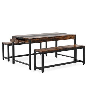 Tribesigns Dining Table Set, Kitchen Breakfast Table with 2 Benches & Sided Drawer for 4-6 People