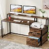 Designed with the elevated monitor stand, this computer desk with storage enables you an ergonomic and comfortable sight-level height and sitting position while working; which effectively relieve eyestrain and the pain on your back and neck. Versatile file cabinet keep everything you need well organized and easily accessible. Two small drawers offers storage solution to your home office supplies. The adjustable file drawer is suitable for hanging legal size or letter size files. The suitable top space of the file drawer cabinet makes it work as as printer stand as well.