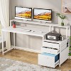 Designed with the elevated monitor stand, this computer desk with storage enables you an ergonomic and comfortable sight-level height and sitting position while working; which effectively relieve eyestrain and the pain on your back and neck. Versatile file cabinet keep everything you need well organized and easily accessible. Two small drawers offers storage solution to your home office supplies. The adjustable file drawer is suitable for hanging legal size or letter size files. The suitable top space of the file drawer cabinet makes it work as as printer stand as well.