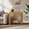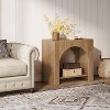 The rectangular side table features a natural brown and simple design. Its unique half-arch shape and cabinet storage design maximize the use of space, while the spacious tabletop provides ample room for all your essentials. This versatile 2-tier storage end table can be used in multiple scenarios. Whether as a small couch side table, a bedside table in the bedroom, or a shelf next to your desk, it perfectly adapts to your needs.