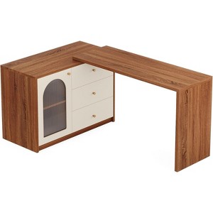 - 【Sturdy Construction & Versatile】Constructed from top-quality E1 particleboard and MDF, this office desk with drawer cabinet ensures sturdiness, longevity, and resistance to scratches and wear. Perfect as a versatile long-term partner, it can function as a large computer desk, an L-shaped office desk, a study writing desk, or even a makeup vanity in your bedroom.