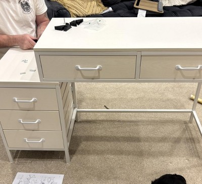 The beside 5-drawer chest is reversible and can be configured either on the right or left according to your space needs or personal preference. The simple and compact design makes this vanity dressing table practical and multifunctional enough, a great furnishing piece for your home! More than a great makeup desk (without a mirror) for your bedroom, it is also a great choice as a computer writing desk for your home office.