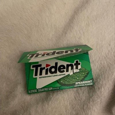 Unapologetically Flavorful Freshen your breath (and care for your mouth) with Trident Sugar Free Gum. Add this gum to care packages, gift baskets, goodie bags, and party favors, or keep a pack on-hand for an instant flavor refresh. Add this package of Trident Spearmint Flavor Sugar Free Gum to your cart for fresher breath and smiles.