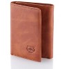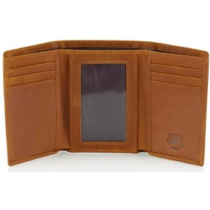 This men's leather trifold wallet features quality napa leather, 9 card slots and an ID window, divided billfold, and our secure RFID blocking lining to keep your personal and financial info safe.
