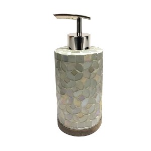 - Carefully cut pieces of pearlescent glass are set in a modern silhouette, making a bath collection made to fit any modern decor seamlessly.