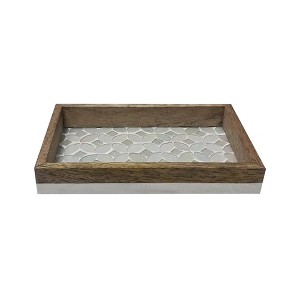 Stunning pearlescent mosaic inlays are set in a neutral resin and accented with natural, responsibly sourced wood to make the Trillium collection. Sturdy and resistant to moisture and mould, each piece in the Trillium collection is crafted by skilled artisans with decades of experience to ensure quality and durability. Polished Stainless Steel accents complete each piece and make an opulent yet modern bath accessory set, perfect for contemporary and modern home decors.