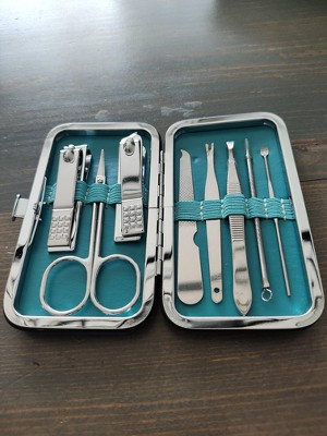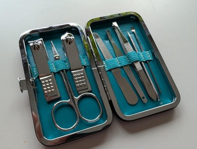 Kit Contains: Nail & cuticle nipper, fingernail clipper, cuticle scissors, nail file, v-shape push stick, tweezer, blackhead remover, cuticle pusher, storage case