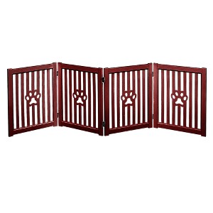Trimate 4 Panel Mahogany Foldable Wooden Pet Gate 80 Inch x 23.6 Inch Freestanding