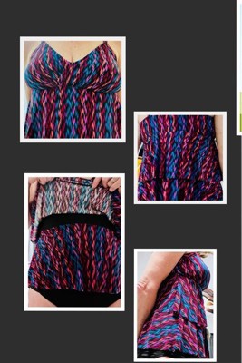 • Double tiered bottom camouflages the midsectionf or a slimming effect