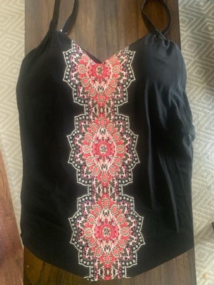 [This review was collected as part of a promotion.] This tankini is so cute…I love the handkerchief cut of the front…gives more coverage. The print on this is super cute, and it for true to size. It feels like the fabric used is very durable. My only complaint is that this didn’t come with bottoms, so I’ll have to find a black bottom that matches. I would recommend this to anyone that wants a little more coverage, but still wants to look cute.