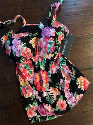 Trimshaper Women's Maddie Square Neck Floral Tankini Swimsuit Top - Desert Flora
