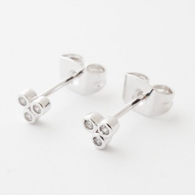 A trio of tiny crystal bezel spheres formed together into a mini triangle. A wearable, simple stud with the perfect amount of subtle sparkle.