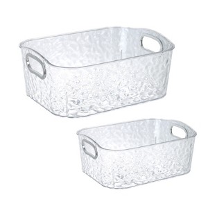 Trio Home 2 Pack Clear Storage Bins with Silver Handles, Container Bins for Organizing - Bathroom, Kitchen, Pantry, Closet, Vanity - 2 Sizes