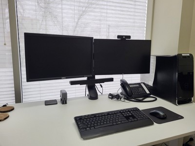 I bought this from Dell.ca. Easy to assemble. No sag with my 2 x 24 inch screens. No monitor bounce with typing. Sturdy design.