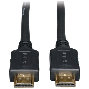 The Tripp Lite® by Eaton® Standard-Speed HDMI® Gold Cable allows interconnection between digital display devices, such as HDTVs and projectors, to digital source devices such as satellite/cable boxes, Blu-Ray™ players, and AV receivers. It supports iPad® 2 Video Mirroring when used with Apple® Digital A/V Adapter. HDMI® assures that the best audio/video signal is always sent from the source to the display. It does this by allowing uncompressed video and multi-channel audio data to be input to the display device through a single cable. An HDMI® connection allows input at high rates of speed, up to 10.2 Gbps. In most applications where the HDMI® cable exceeds 16 ft., a signal booster (B122-000-60, sold separately) will need to be used with this cable to ensure a signal strong enough for your display._