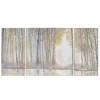 The Forest Reflections Triptych 3-piece Canvas Wall Art Set by Artist Norman Wyatt Jr. brings an enchanting aesthetic to your home. This canvas wall art set features a forest setting and pond, in cool and natural hues across the three canvases, creating a serene landscape. A light gel coating provides additional texture and a light glossy touch, while 2 D-rings on the reverse of each piece makes this set easy to hang and arrange on your wall. Spot Clean only; this 3 piece set comes with one 30x30in panel and two 15x30in panels.
