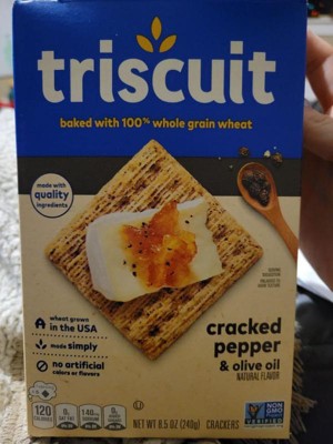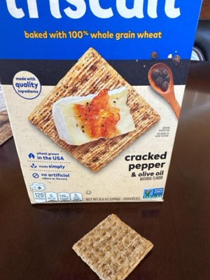 - One 8.5 oz box of Triscuit Cracked Pepper & Olive Oil Whole Grain Wheat Crackers (packaging may vary)