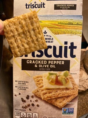 [This review was collected as part of a promotion.] The Triscuit Cracked Pepper & Olive Oil is a very flavorful, enhanced Triscuit. It is more than I had expecte, crisp and delicious with or without a cheese or a dip. We enjoyed these during the holidays as appetizers.