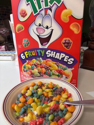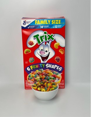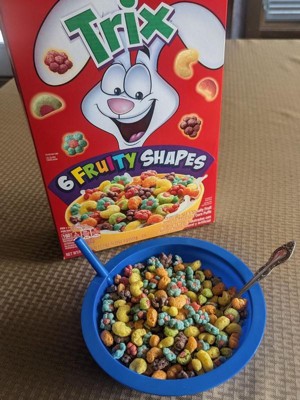- FRUITY SHAPES AND TASTE: Trix cereal features cereal pieces in six colorful fruity shapes with a yummy fruity taste; An ideal pantry staple