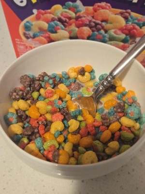 [This review was collected as part of a promotion.] This cereal is very appealing to the eyes, smells amazing, and tastes good. It stayed crunchy to the bottom of the bowl. Trix makes my kids excited to have breakfast. We limit "treat" cereals but this one has contributed positively to a festive holiday. This box is a reasonable size for everyone to enjoy and will be finished before the excitement wears off.