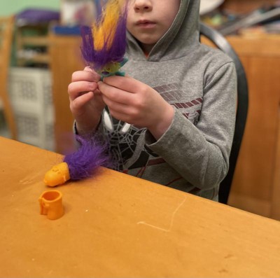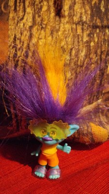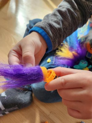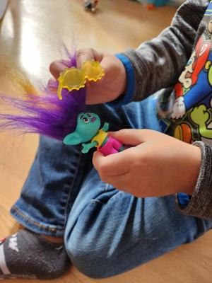 [This review was collected as part of a promotion.] This is a cute little toy, would be a good thing to bring in the car or a restaurant also. The colors on the trolls dolls are always so bright and colorful, and kids gravitate towards them. This play set comes with 9 pieces - the troll, pants, shoes, and glasses, and two hair pieces, purple and bright yellow. You can pop the hair pieces in the center of the head to change the troll’s appearance and make him more colorful. I wish the purple piece was another color, maybe orange or pink for contrast, but the kids don’t mind and it’s still really cute