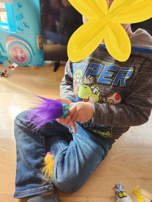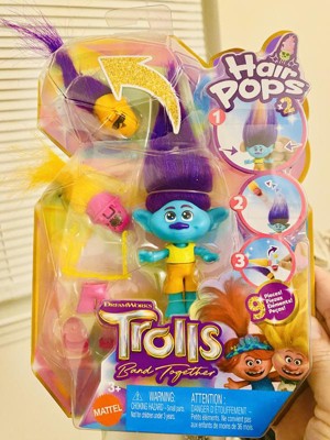 This adorable Branch doll comes with vibrant purple plush hair that hides a magical twist — two Hair Pops that pop out with just a pinch! Each Hair Pop opens to reveal a surprise accessory inside, adding even more excitement and imaginative play possibilities. Kids can store accessories inside the Hair Pops or swap them around to create new Troll-tastic styles.