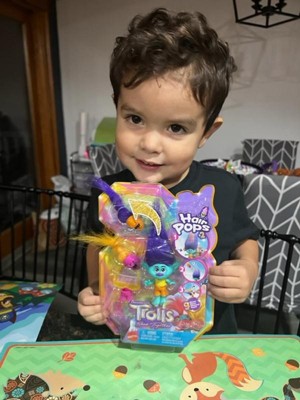 [This review was collected as part of a promotion.] A cute little Trolls doll has bright vibrant colors that really Pop. He's well made with fine details and sweet accessories. This Hair Pops Troll hair really flys and is full of fun. My son loves to bring him everywhere. He's able to be wiped cleaned to get off the days adventure before bed. We can't wait to collect his friends and "reunite the family". We Love Trolls!!!!