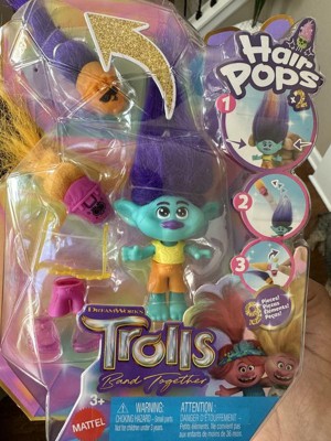 Trolls Hair Pops Branch Doll – 7-Piece Small Doll Set with Pop-Out Hair Accessories