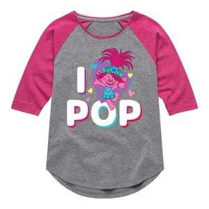 Trolls - I Love Pop Poppy - Toddler & Youth Girls Raglan Graphic T-Shirt - Step into the whimsical world of the Trolls movie franchise with our vibrant collection of apparel. Crafted with premium materials for comfort and style, our Graphic Garments are perfect for adding a pop of personality to your wardrobe. Whether you're dancing to the beat of your own drum or spreading positivity wherever you go, our Trolls Graphic Garments are sure to brighten your day and spread smiles to everyone around you.