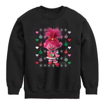 Boys' Trolls Poppy Blue Green Ugly Sweater Graphic Long Sleeve Fleece Sweatshirt - Black - 5T