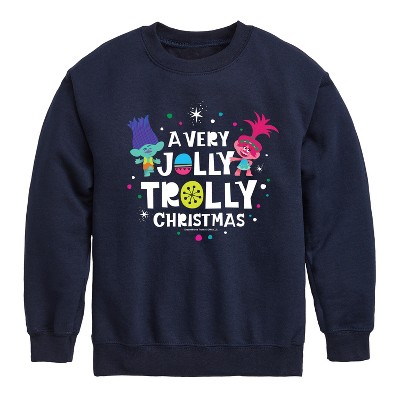 Boys' Trolls Poppy Branch Sweater Graphic Long Sleeve Fleece Sweatshirt - Navy - 5T