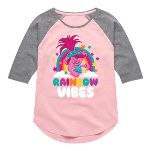 Trolls - Rainbow Vibes Poppy - Toddler & Youth Girls Raglan Graphic T-Shirt - Step into the whimsical world of the Trolls movie franchise with our vibrant collection of apparel. Crafted with premium materials for comfort and style, our Graphic Garments are perfect for adding a pop of personality to your wardrobe. Whether you're dancing to the beat of your own drum or spreading positivity wherever you go, our Trolls Graphic Garments are sure to brighten your day and spread smiles to everyone around you.