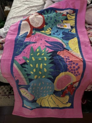 Add a pop of fruity style to your waterside activities with this Tropical Fruit Beach Towel from Sun Squad™. It is adorned with tropical fruits on a pink backdrop to add fun vibes to your beach gear. The lightweight beach towel is made of cotton in a terry weave that's perfect for spreading out on the sand while soaking up the sun, as well as wrapping around your waist after a quick dip in the pool.