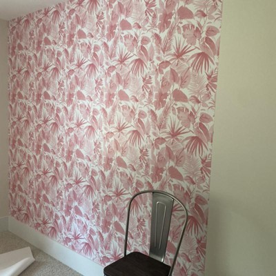 Tropical Leaves Peel & Stick Wallpaper Pink - Opalhouse™: Removable Vinyl, Botanical Leaf Pattern, Self-Adhesive, 27.5 Sq Ft Coverage