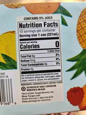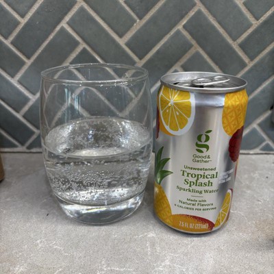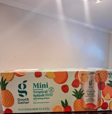 Turn on vacation mode while you're sipping on this 10-Pack of 7.5-Fluid-Ounce Tropical Splash naturally flavored with other natural flavors Sparkling Waters from Good & Gather™. This pack of 10 sparkling waters features refreshing tropical notes. Plus, each 7.5-fluid-ounce can has no calories per serving for an unsweetened sparkling drink you'll feel great about reaching for.